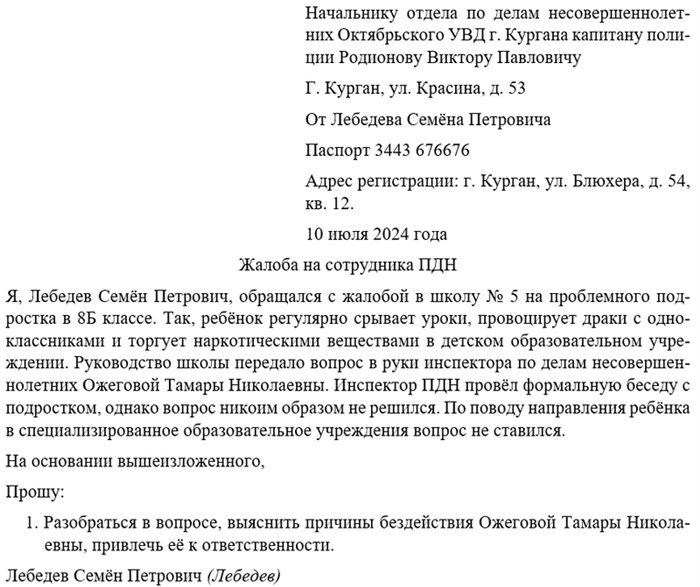 - Приложения: Перечислите все документы, которые вы прилагаете к жалобе.