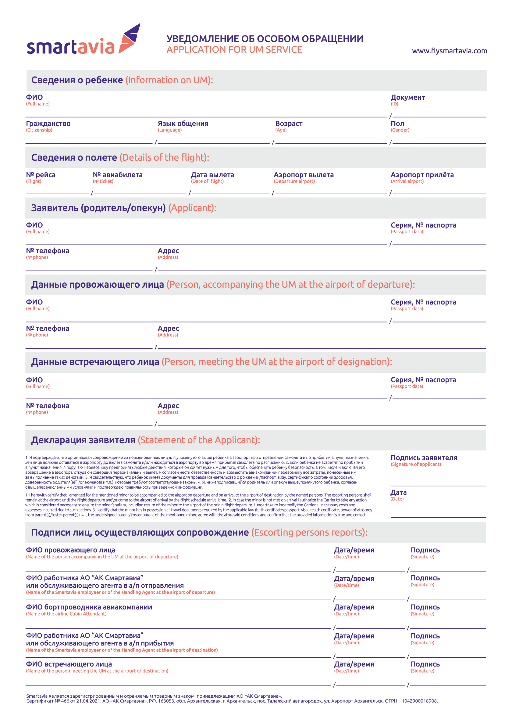 Вы также можете отправить жалобу по электронной почте. Направьте ваше обращение на адрес support@smartavia.ru. В письме укажите: