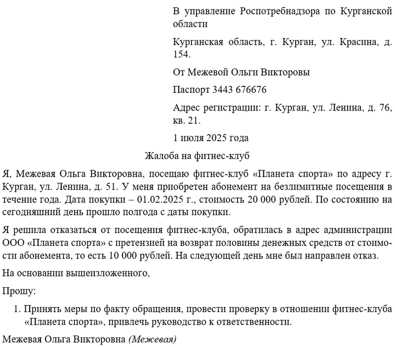 Если у вас есть жалобы на санитарные условия или качество пищи и напитков, вы можете обратиться в Роспотребнадзор. Эта организация проверяет соблюдение санитарных норм и может провести проверку в клубе.
