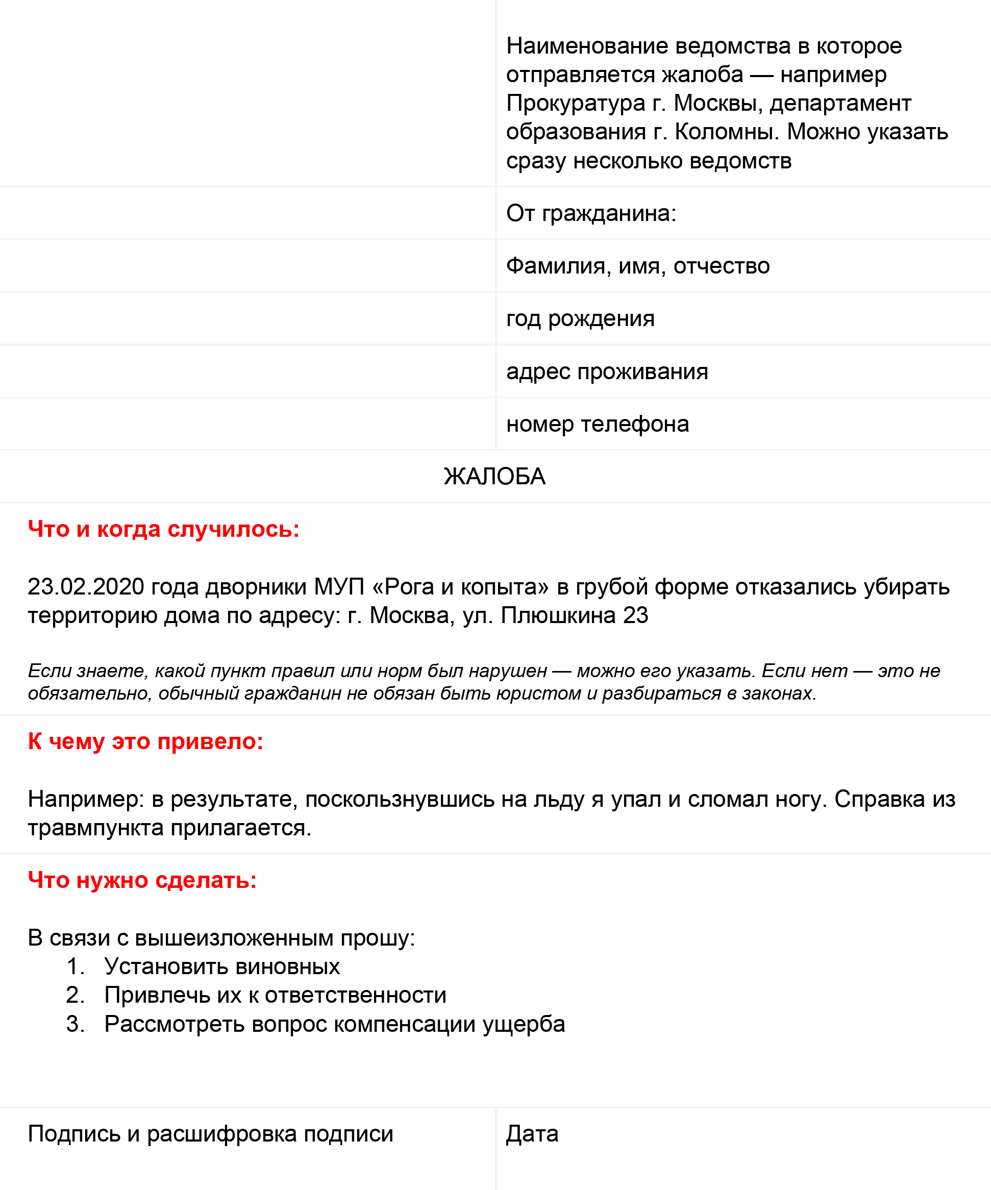Если проблема остаётся нерешенной, вы можете подать жалобу в прокуратуру. Это необходимо в том случае, если имеются нарушения закона при проведении работ или если ваши права как гражданина не соблюдаются.