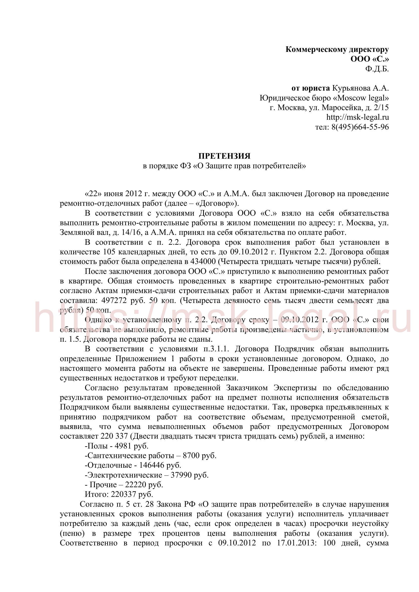 - Копии ваших обращений к подрядчику и в другие инстанции.