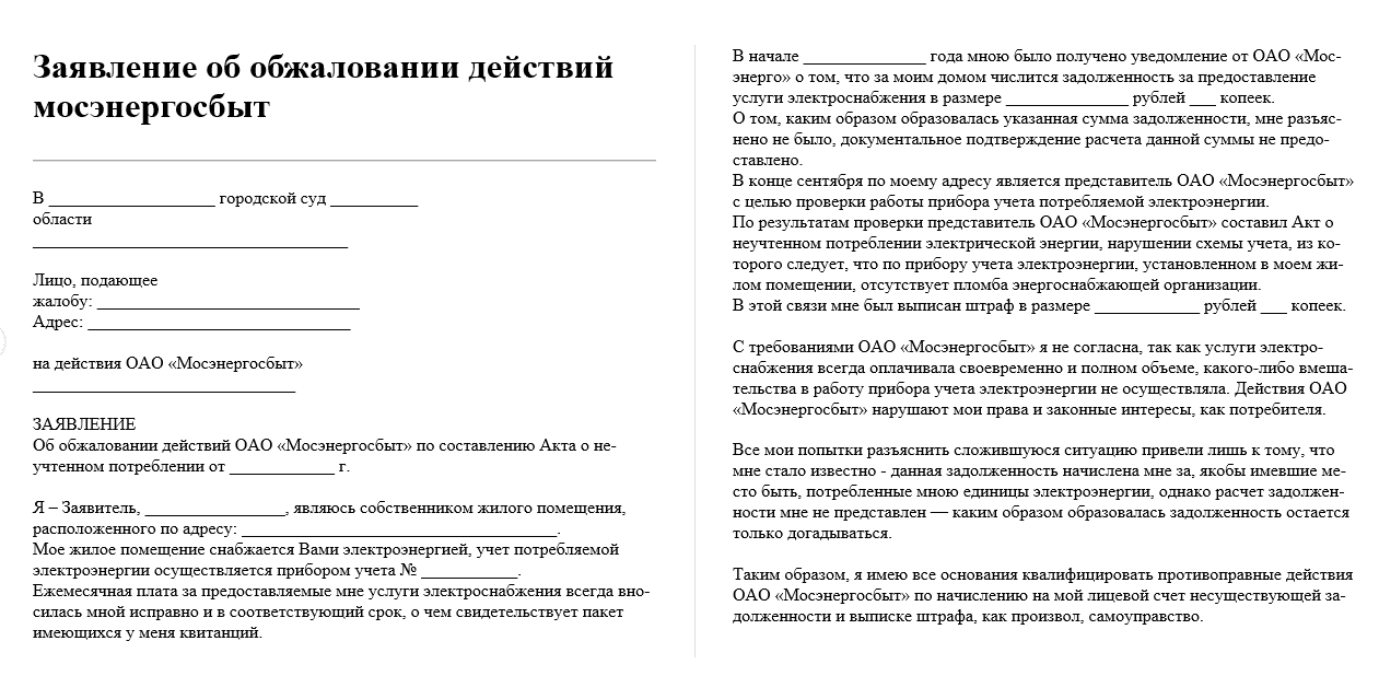 Формат жалобы может быть следующим: