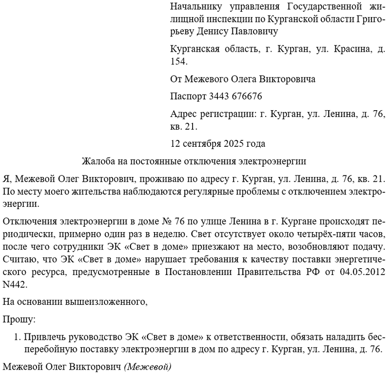 - Копии жалоб и ответов от энергоснабжающей компании и регуляторов.