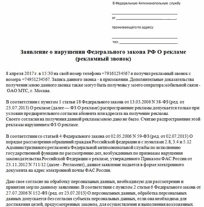 - Причины, по которым вы считаете рекламу незаконной.