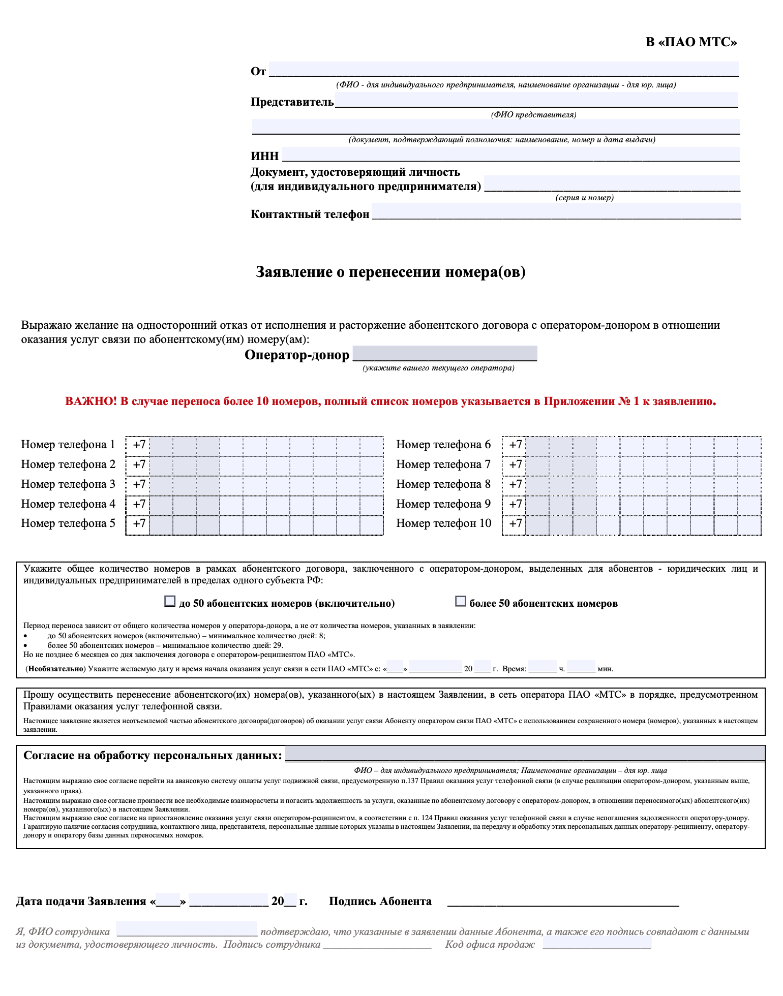 - Лично в офисе оператора.