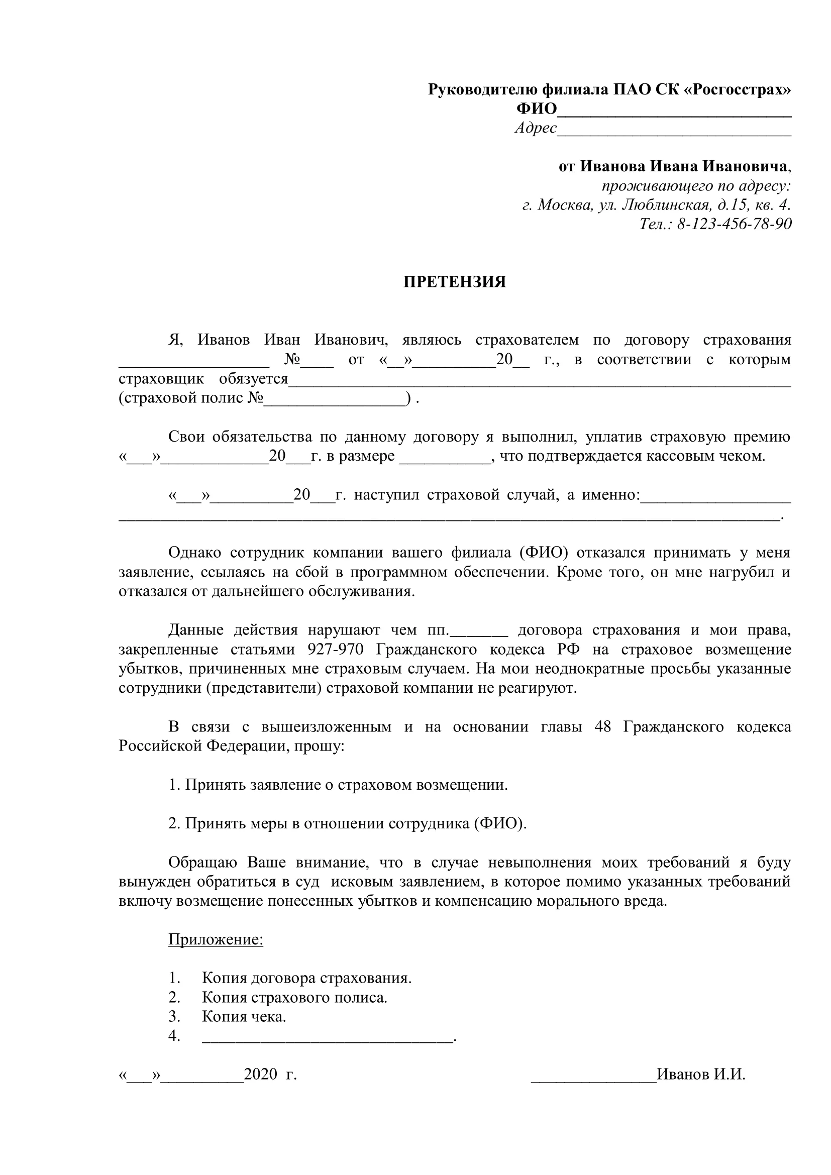 Самый прямой способ — обратиться в ближайший офис Росгосстраха. Подготовьте все документы и напишите жалобу на имя руководителя офиса. Рекомендуется: