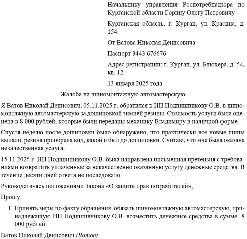 Если обращение в администрацию шиномонтажа не дало результатов, вы можете обратиться в Роспотребнадзор. Это государственный орган, который защищает права потребителей. Для подачи жалобы вам потребуется: