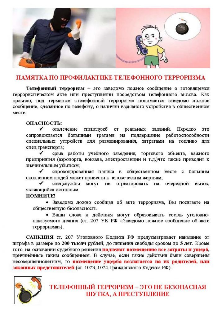Важно помнить, что телефонные террористы часто пытаются вызвать панику. Если вы получили угрожающий звонок: