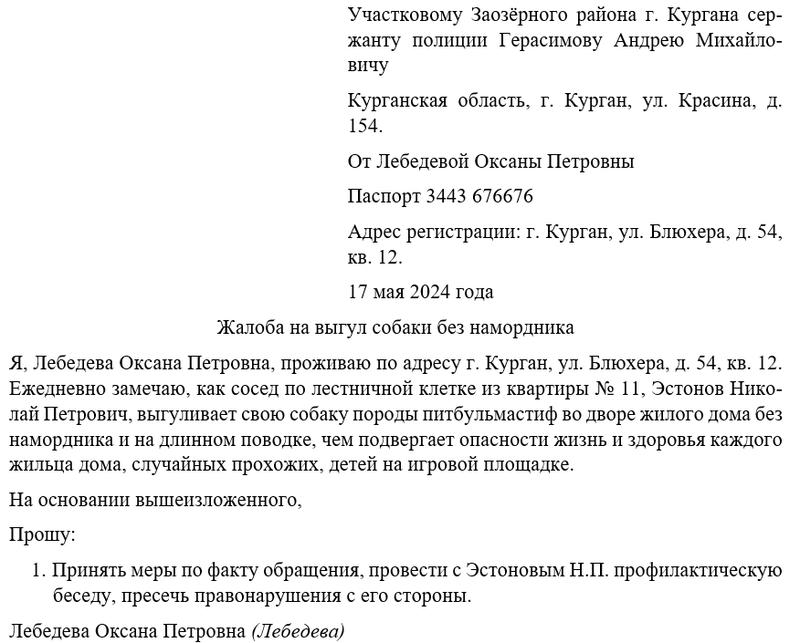 - Ваши требования. Четко сформулируйте, что вы хотите, чтобы было сделано (например, проверка владельца, штраф и т.д.).