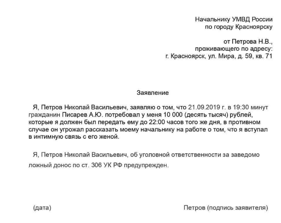 Как правильно написать заявление в полицию?