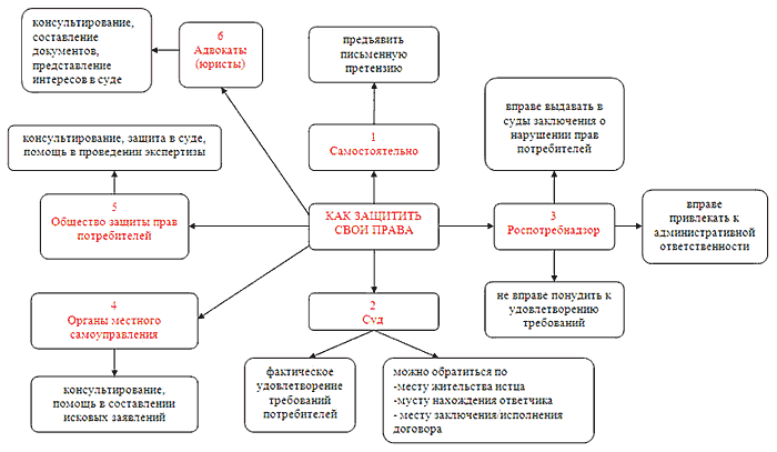 - Защиту своих прав. Потребитель может обратиться в государственные органы, если его права нарушены.