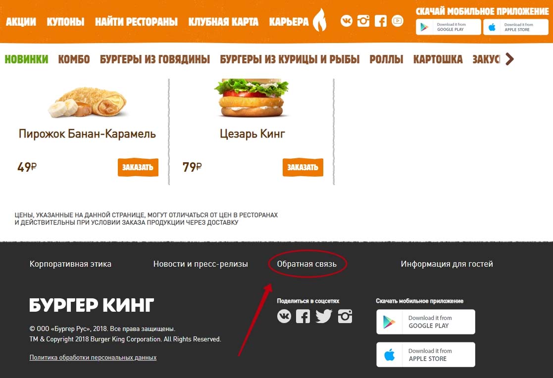 - Социальные сети. Бургер Кинг активно ведет свои страницы в социальных сетях (ВКонтакте, Instagram, Facebook). Вы можете оставить комментарий или написать личное сообщение.
