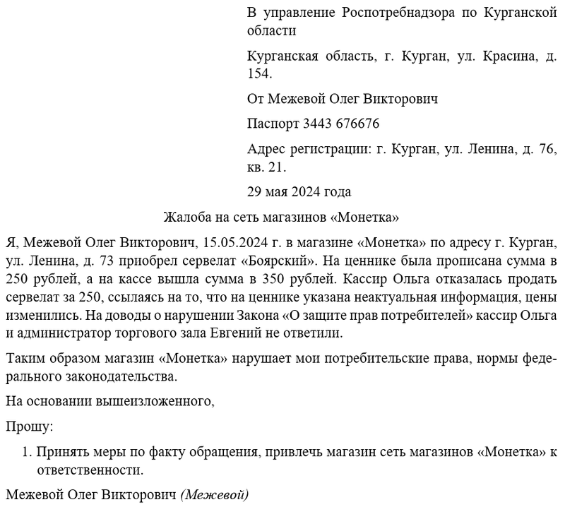 - Ссылки на законодательство: Если ваша проблема касается нарушения прав потребителей, укажите на соответствующие законы или регламенты, которые подтверждают вашу позицию.